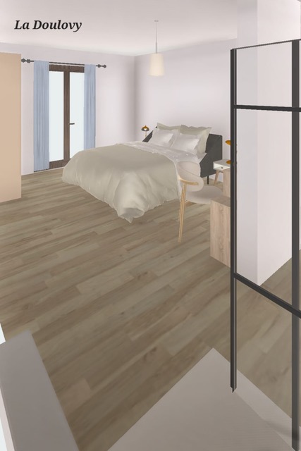 Le Doulovy se situe au premier étage de la maison, bénéficiant d'une vue magnifique sur la piscine. Vous pourrez accéder directement à la terrasse de l'étage, descendre par l'escalier interieur ou exterieur pour accéder à la piscine, et également accéder au jardin.