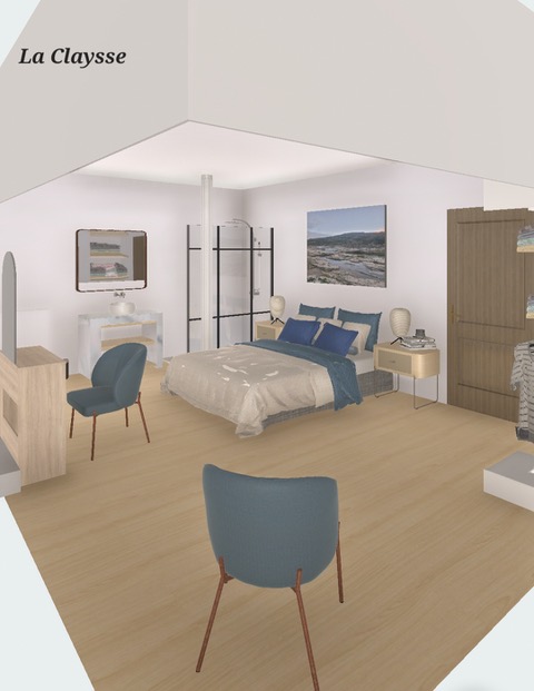 Notre chambre double supérieure à l'étage a adoptée le nom de la belle rivière "Le Granzon".