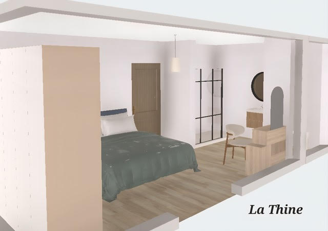 La Thine se situe au premier étage de la maison, bénéficiant d'un accès direct au jardin. Vous pourrez accéder directement à la terrasse et la piscine en descendant par l'escalier interieur ou exterieur.